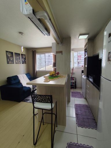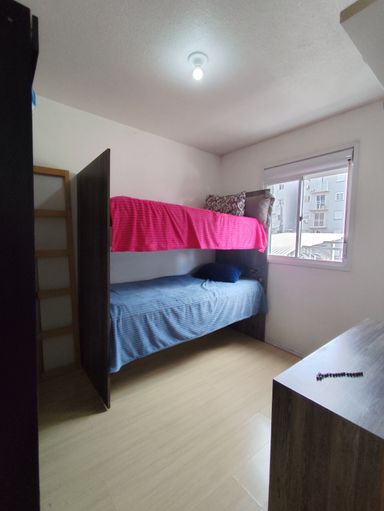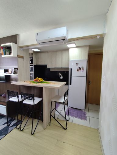 O imóvel é composto de 2 dormitórios, banheiro, sala, cozinha, área de serviço e sacada.